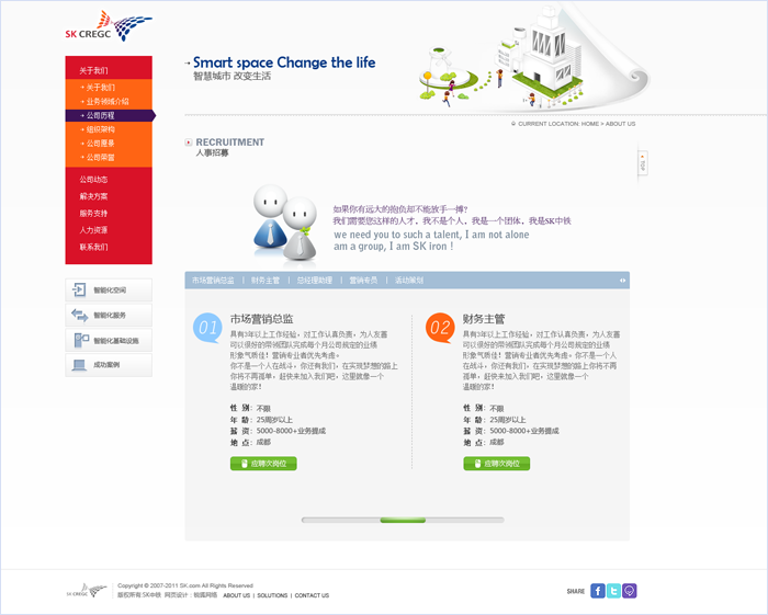 名称:SK中铁 分类:学校政府 TAG:食品优品道新象 VISIT SITE 访问该网站 SK中铁(空间)智能化管理有限公司成立于2010年9月1日,是由韩国SK电讯与中铁二局共同投资7750万元人民币在成都成立的合资公司。智能公司官网由网页设计、成都网站制作公司四川锐狐开发。 首页 关于 服务 案例 方案 联系 新闻 top